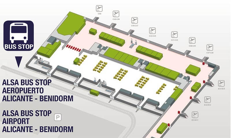 На автобусе — из Аликанте до аэропорта ходит маршрут C 6, который проходит через остановки возле городского автовокзала и ж/д станции. Из города Эльче ходят автобусы №1A и №1B. Аэропорт Аликанте напрямую связан со следующими городами и курортами: Бенидорм, Кальпе, Торревьеха, Мурсия, Торрельяно, Санта-Пола.