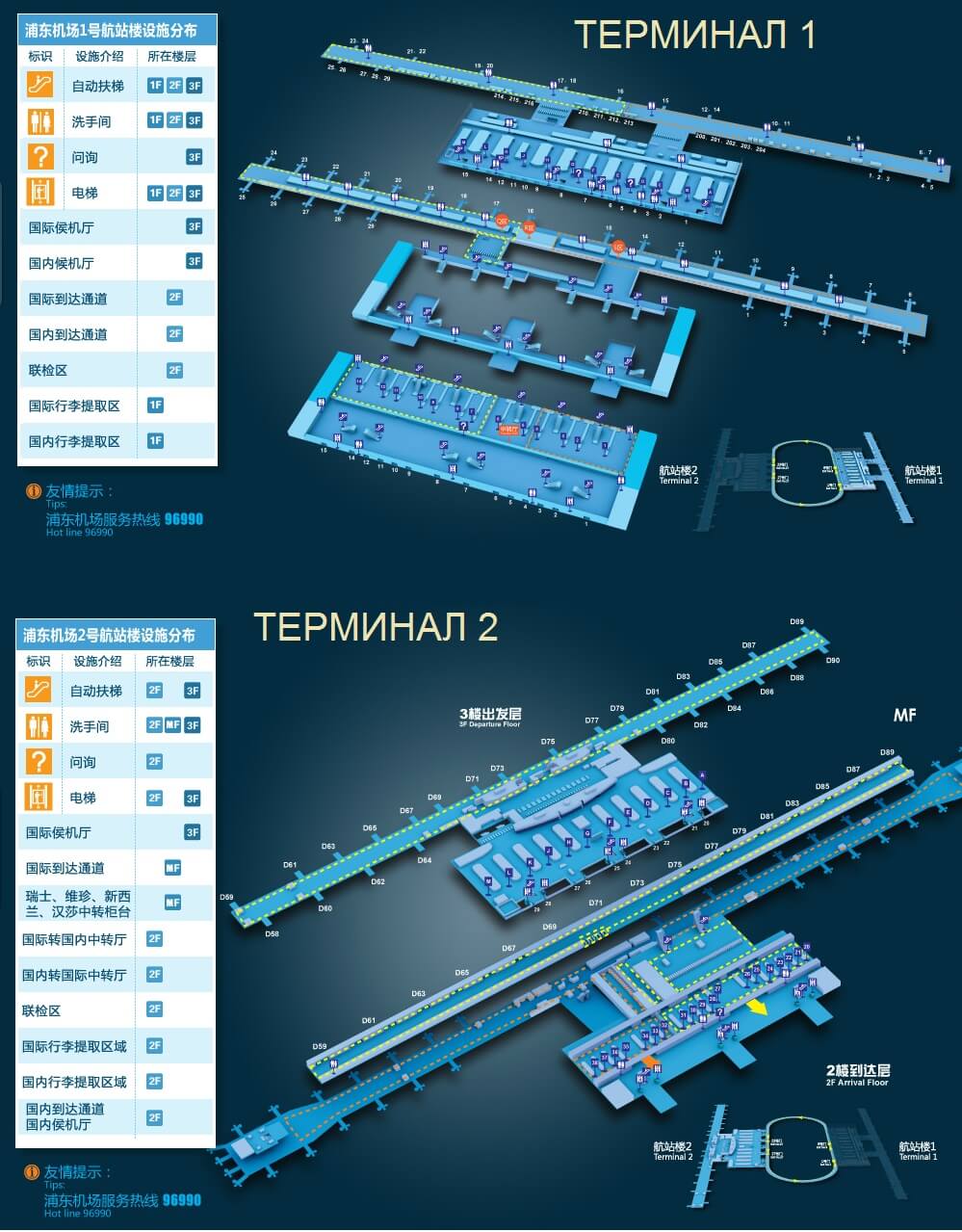 На данный момент аэропорт «Пудун» располагает двумя терминалами: