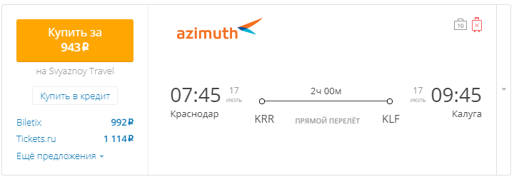 Краснодар - Калуга: 07:45 - 09:45