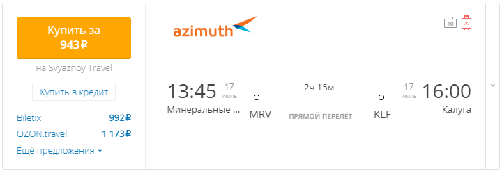 Минеральные Воды - Калуга: 13:45 - 16:00