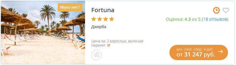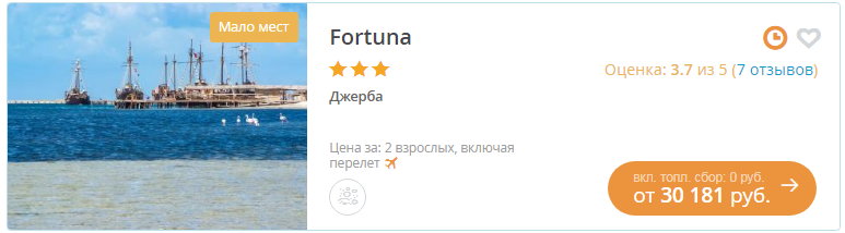 2. Отель Fortuna 3* - от 15624 рублей за одного.