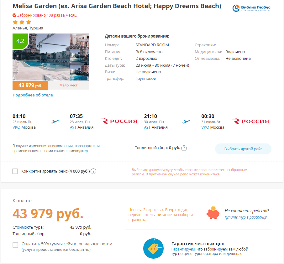 Важно: предложение ограничено по времени, поэтому цена может измениться. Не стоит откладывать бронирование в долгий ящик.